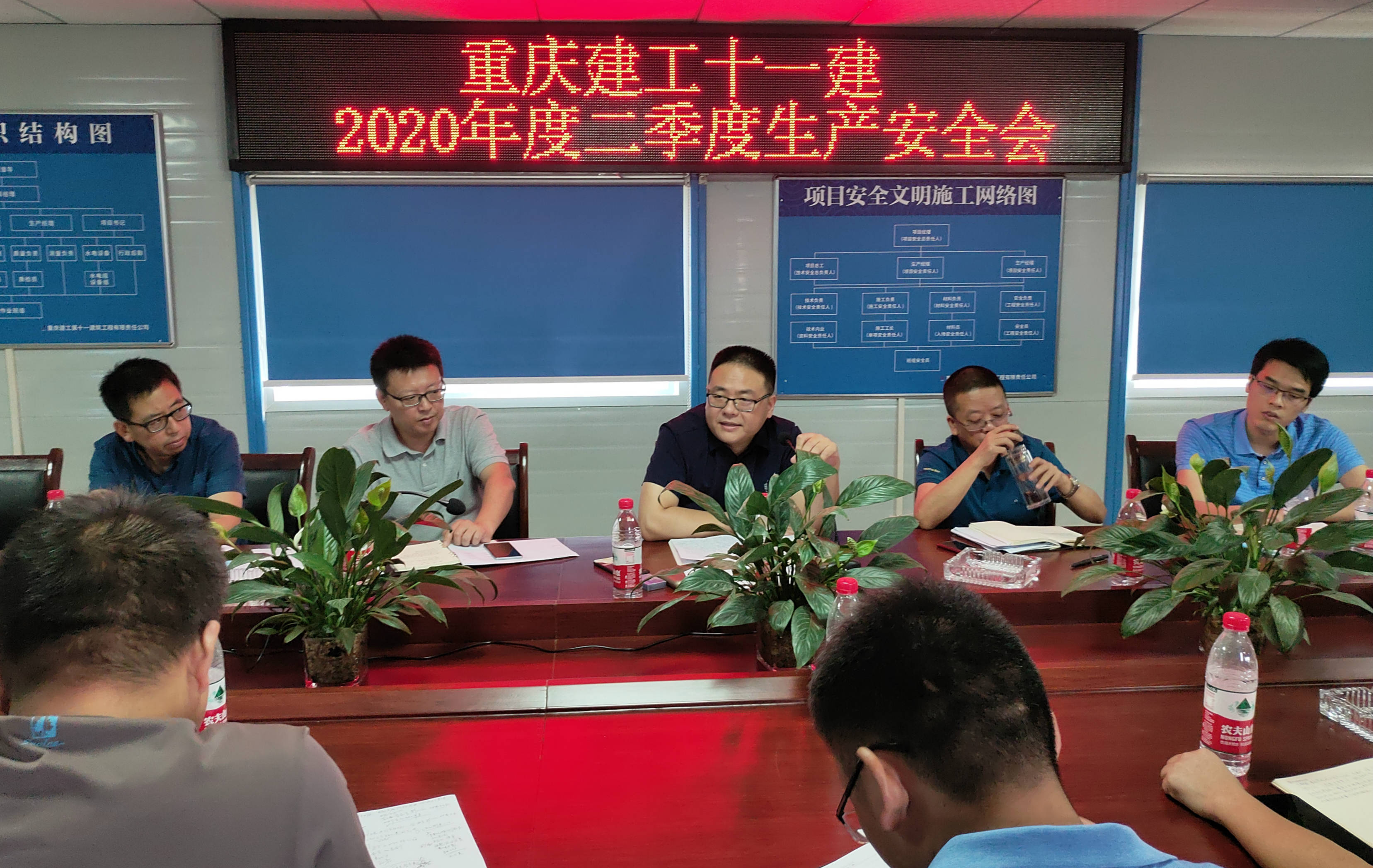 7月24日,公司2020年二季度生产安全会在璧山区实验小学永嘉校区项目部召开。公司总经理聂波,副总经理秦浩、高峰、罗培全,财务总监江涛,相关部门负责人及各在建项目代表共计28人参加会议。